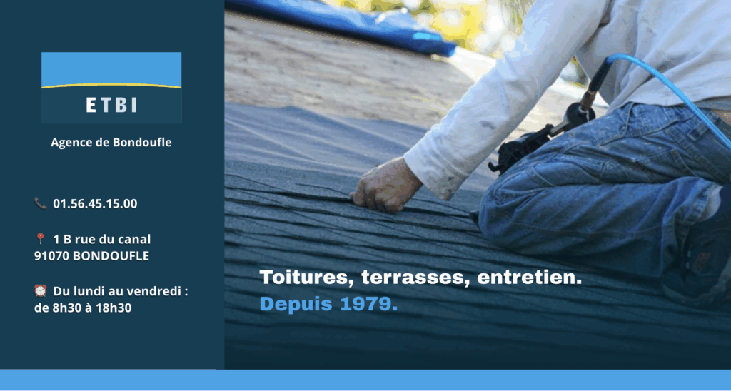 Notre agence locale ETBI – Bondoufle intervient rapidement dans l’Essonne et le sud de l’Île-de-France avec des solutions efficaces, durables et garanties pour la recherche de fuites, les diagnostics, l’étanchéité, les réparations, le bardage, l’isolation et le nettoyage des toitures-terrasses.
