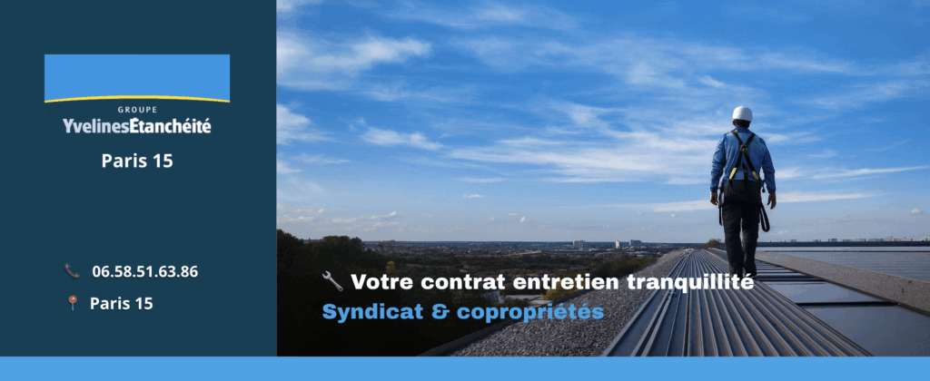 Depuis plus de 40 ans, Yvelines Étanchéité accompagne les syndics de copropriété dans la gestion préventive de leurs toitures, terrasses, balcons et parkings. Nos contrats d’entretien sont conçus pour anticiper les risques, éviter les sinistres et sécuriser vos budgets.